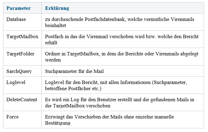 Quelle Microsofts Docs: Search-Mailbox (ExchangePowerShell) | Microsoft Docs